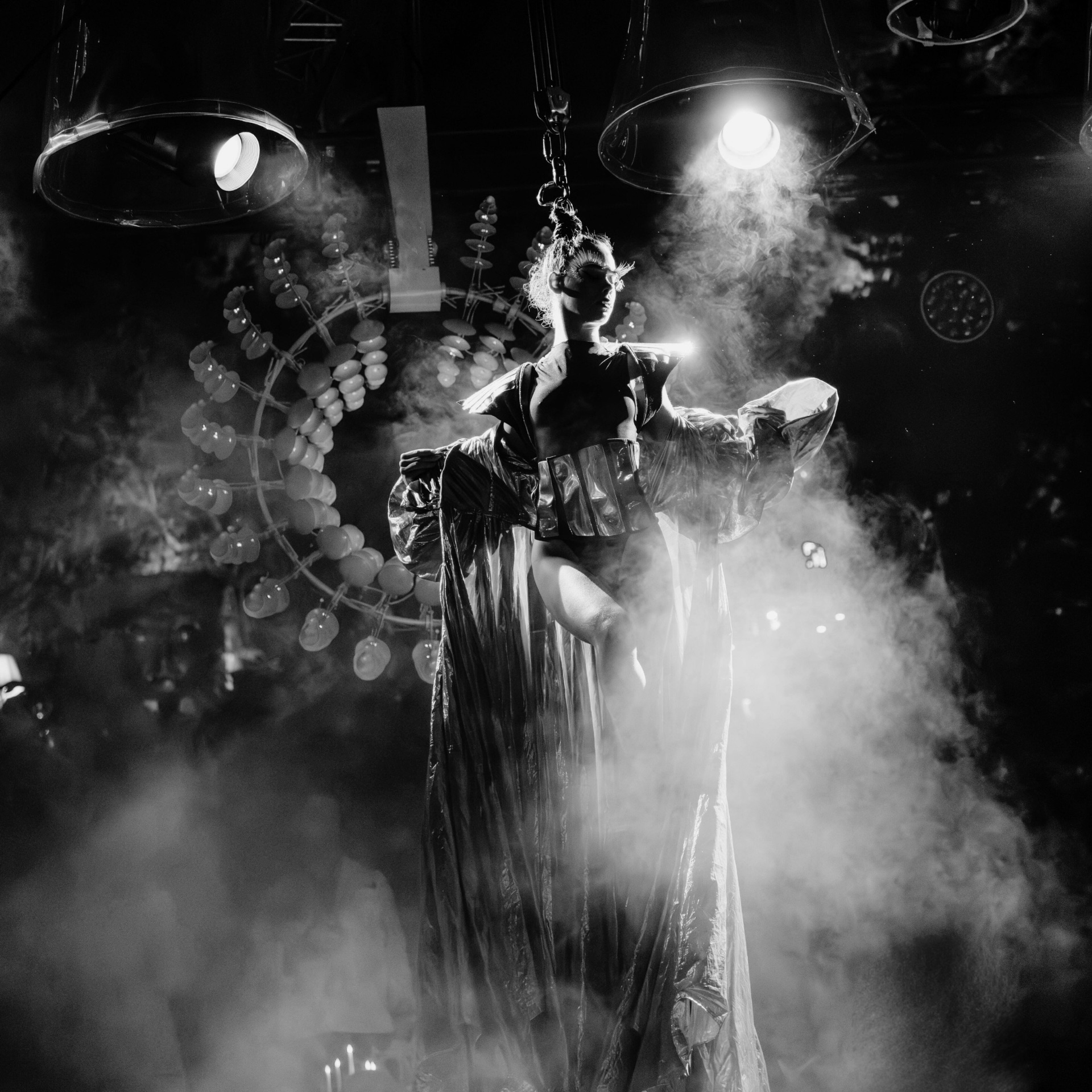 A new being emerges, brought into fruition by a collective imagination. Dance and hair aerial elements.